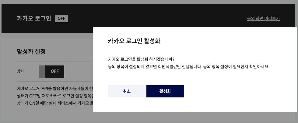 2) 카카오 로그인 사용 승인 받기