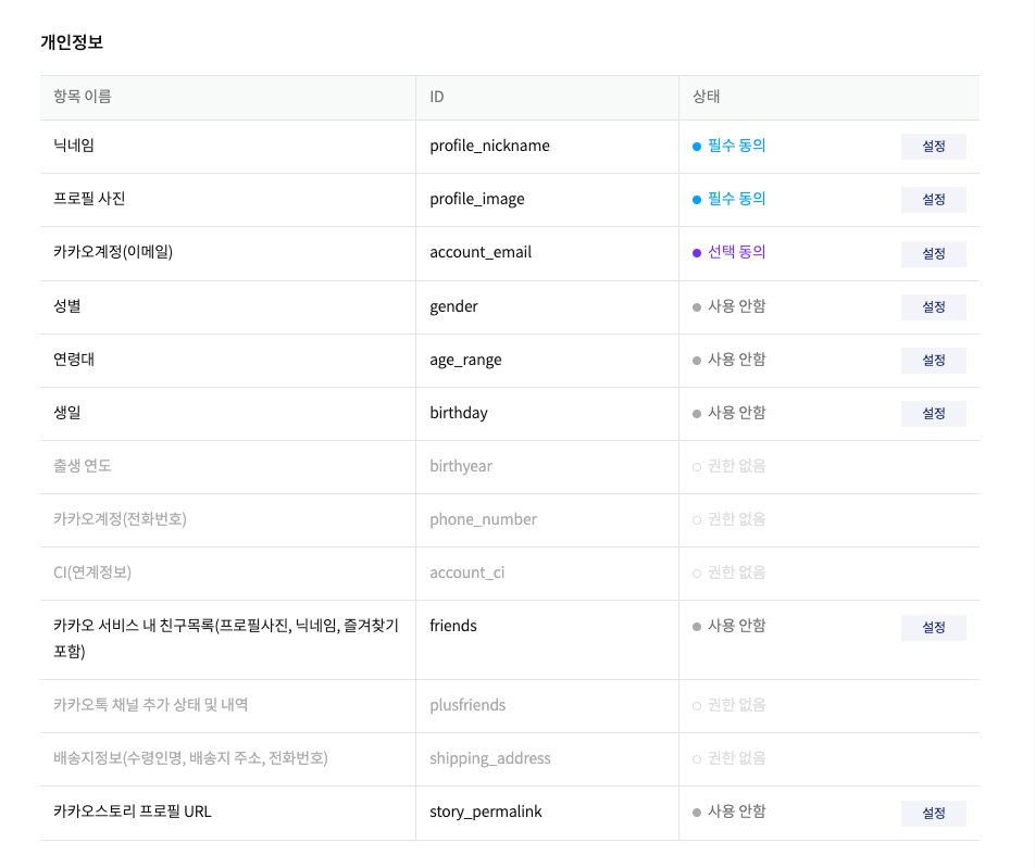 8) 동의항목 설정하기: 내 어플리케이션에서 필요한 카카오 사용자 정보 정하기