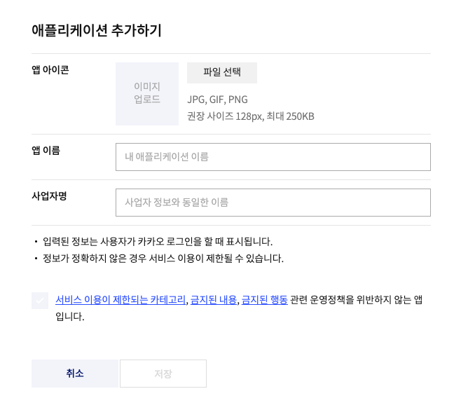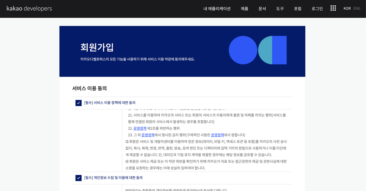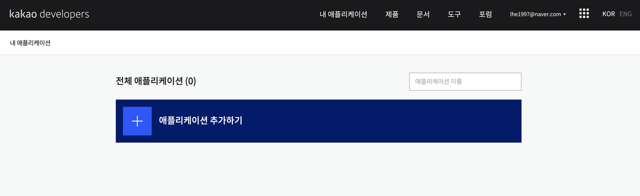 - 카카오 개발 사이트에서 '애플리케이션 등록'이 필요