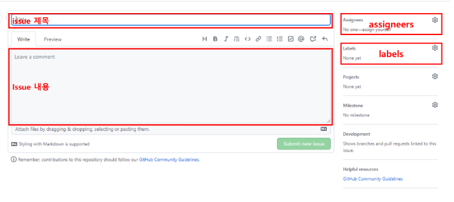 1) issue 생성: new issue