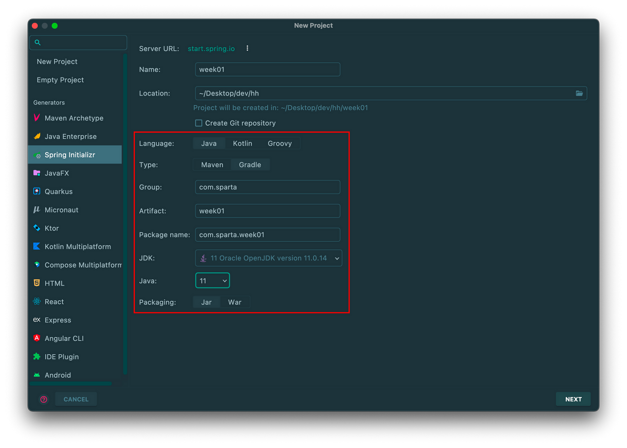 src > main > java > com.sparta.week00 > domain 패키지 생성