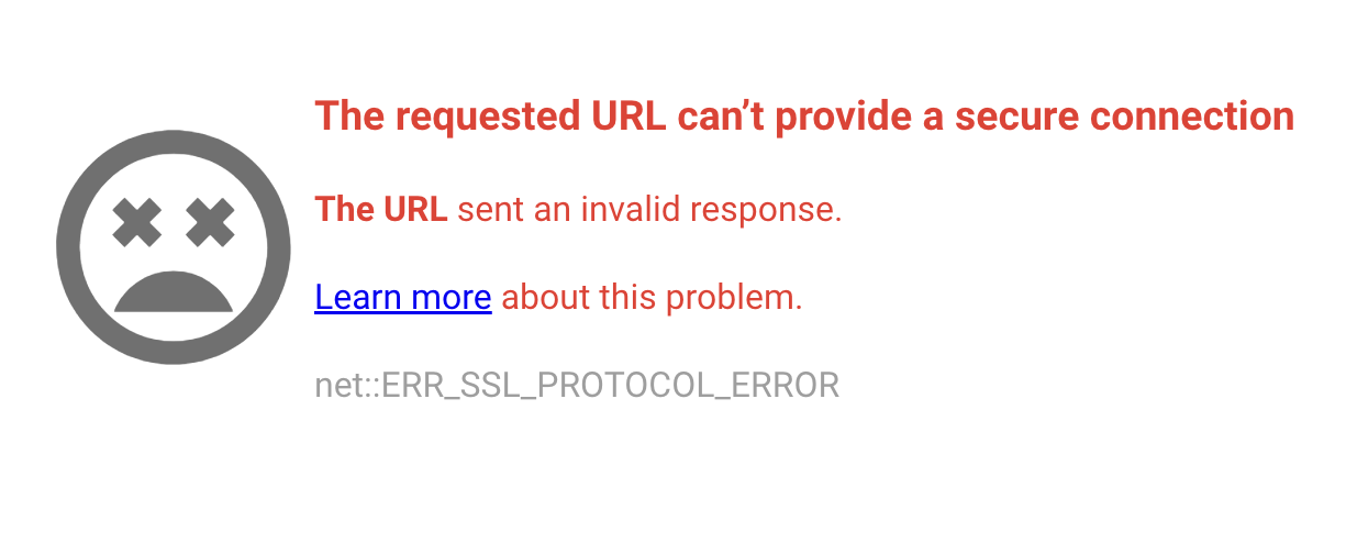 The requested URL can’t provide a secure connection The URL sent an invalid response.