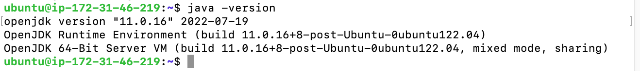 OpenJDK 64-Bit Server VM (build 11.0.16+8-post-Ubuntu-0ubuntu122.04, mixed mode, sharing)