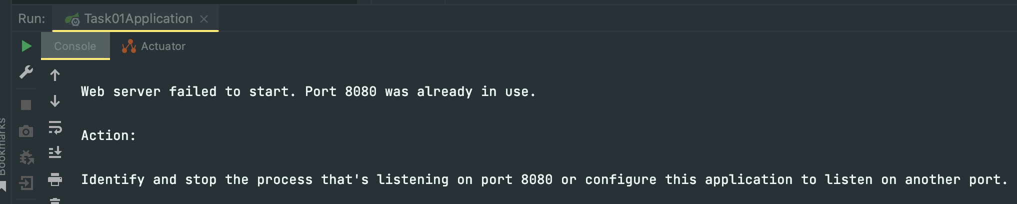 -> 포트가 이미 실행 중일 때 스프링을 Run하면 발생하는 에러