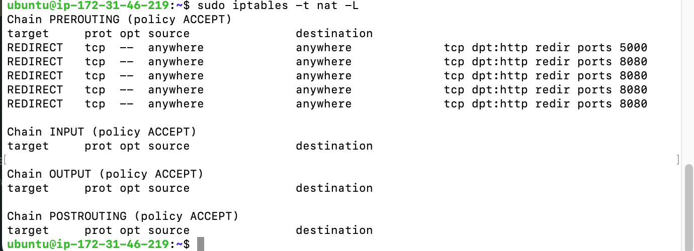 //포트80에서 포트 5000 리다이렉트 제거 명령