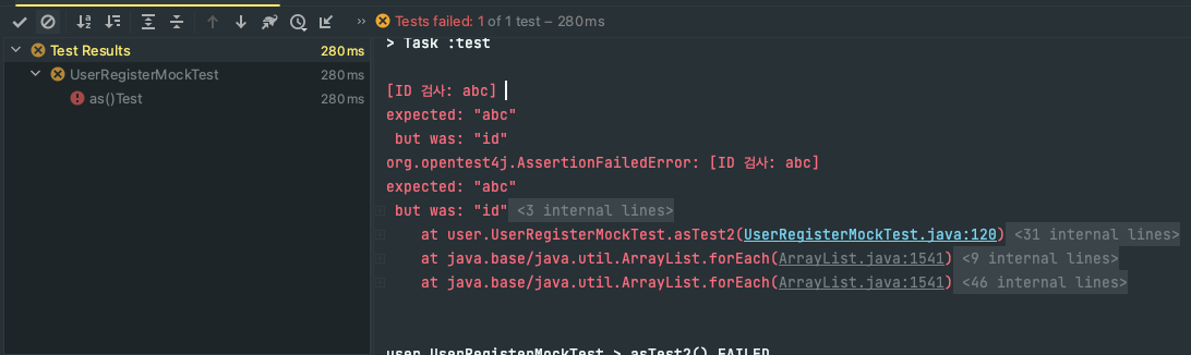- as(): 테스트에 설명을 붙인다. as()메소드로 지정한 설명 문구가 실패 메시지에 표시된다.