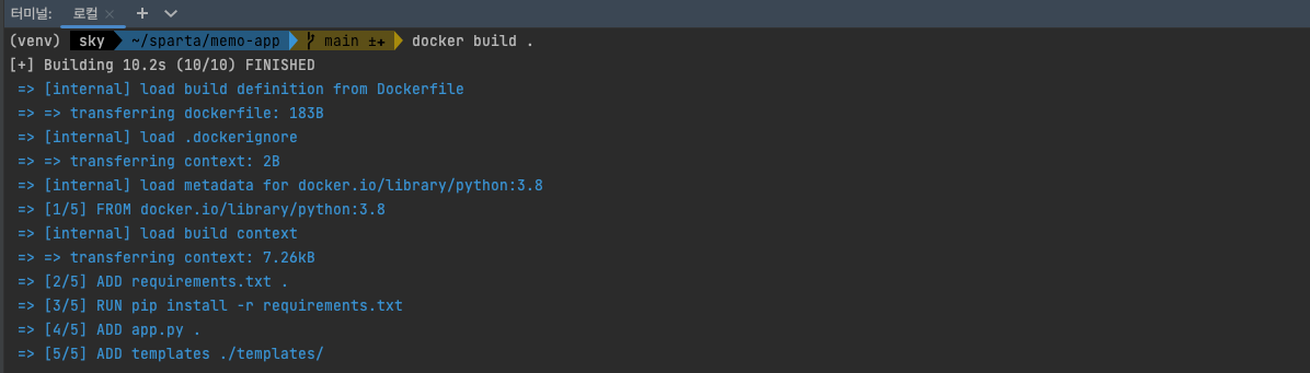 '.' 옵션: 도커 빌드를 어느 위치에서 실행할 것인지 정의