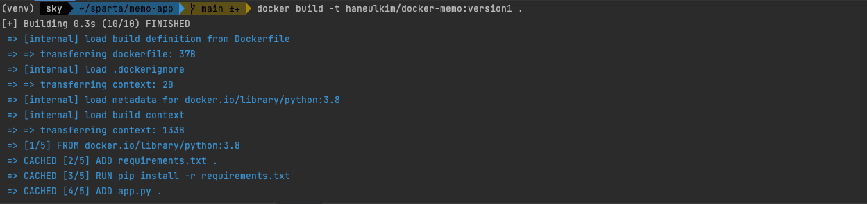 dockerfile을 실행하기 위해서는 docker build 커맨드 사용