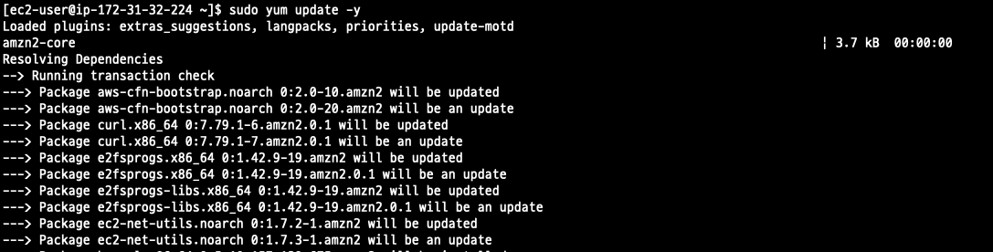 2. yum: Amazon linux에서 패키지를 관리하는 CLI 툴, 업데이트 확인