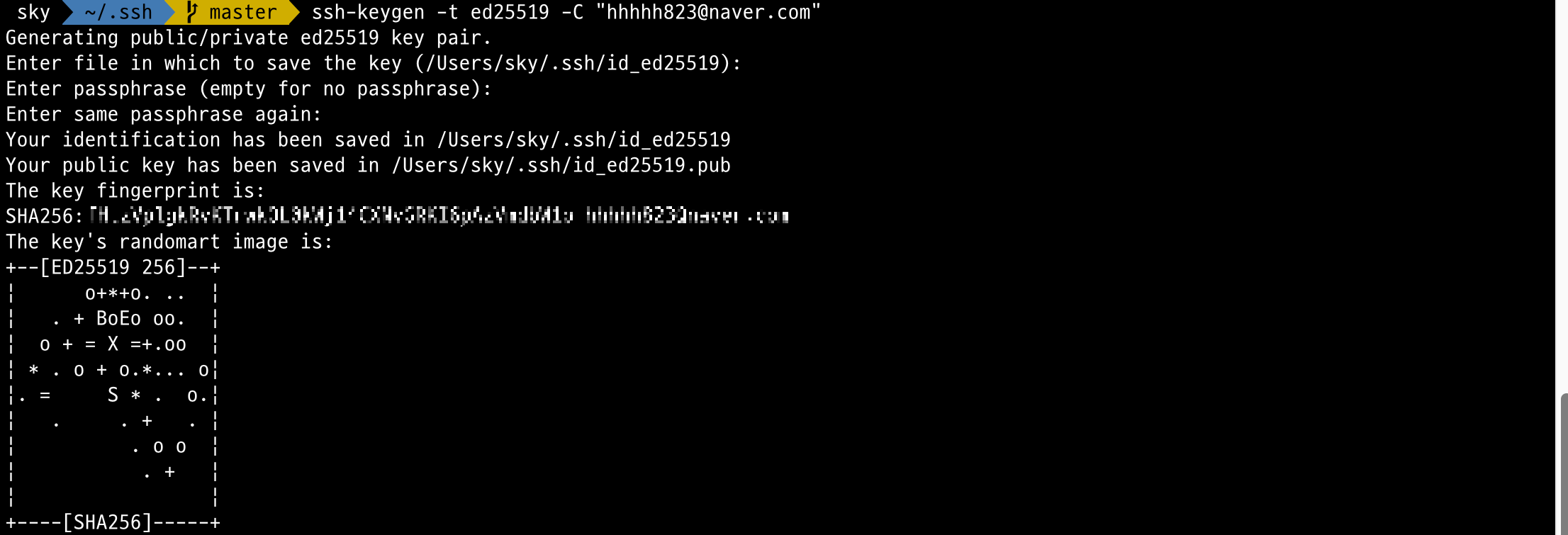 Enter passphrase(empty for no passphrase): 암호 입력하고 엔터 누르기