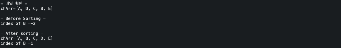 // binarySearch() 메서드 사용 전 정렬 필수