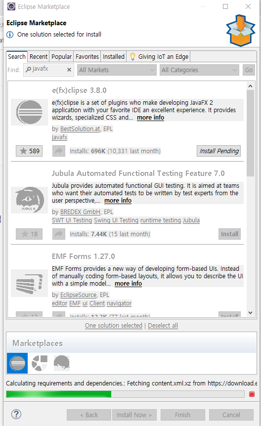 marketplace - javafx검색 - e(fx)clipse 설치