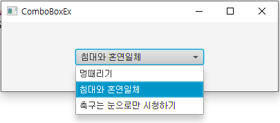combo.getItems().addAll("멍때리기", "침대와 혼연일체", "축구는 눈으로만 시청하기");