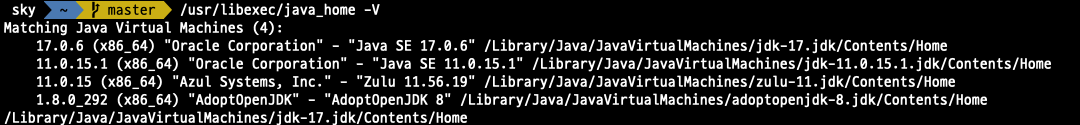 /usr/libexec/java_home -V