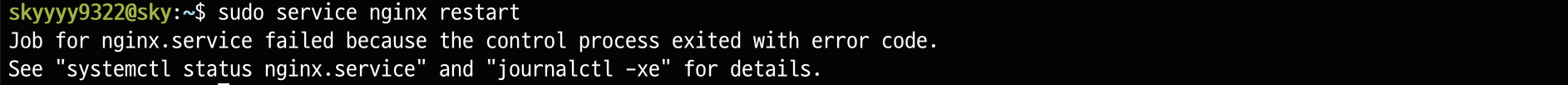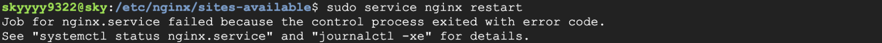 nginx 설정 파일 작성 후 유효성 검사인 sudo nginx -t 명령을 통과하지 못하고 아래와 같은 에러 발생