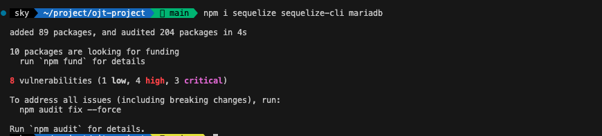 시퀄라이즈, 시퀄라이즈 명령어 실행을 위한 sequelize-cli, mariadb드라이버 설치