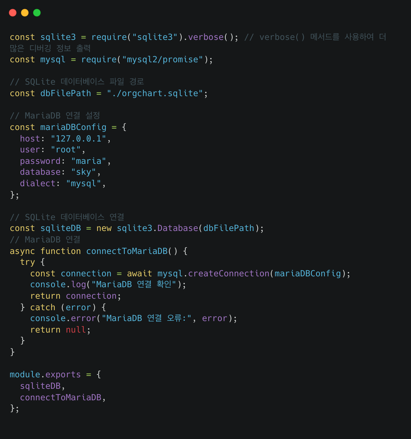 const sqlite3 = require("sqlite3").verbose(); // verbose() 메서드를 사용하여 더 많은 디버깅 정보 출력