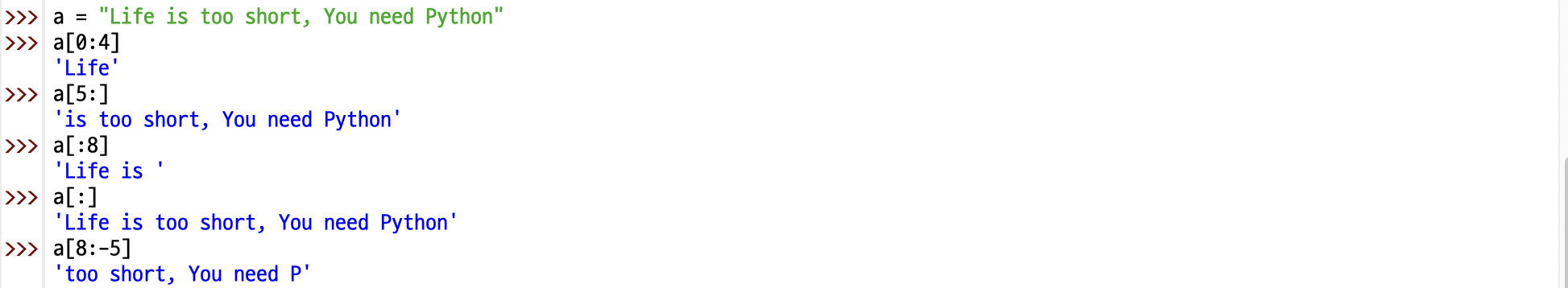 인덱싱은 무엇인가를 '가리킨다', 스라이싱은 무엇인가를 '잘라낸다'