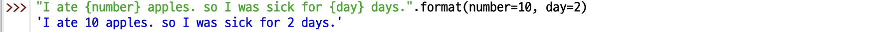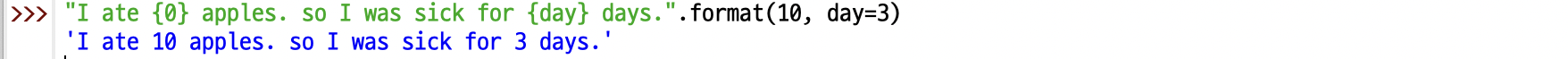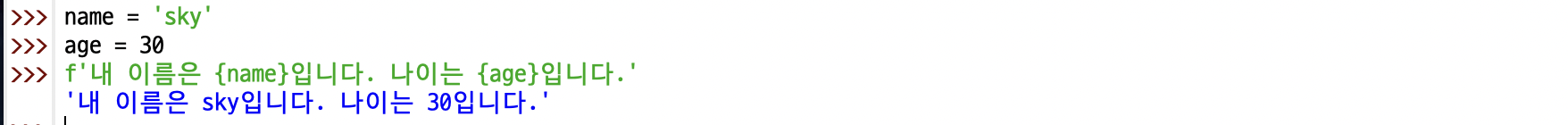 파이썬 3.6버전부터는 f문자열 포매팅 기능을 사용할 수 있음