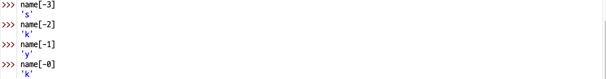 -를 붙이면 문자열 뒤부터 세는 것, 단 -0과 0은 똑같음