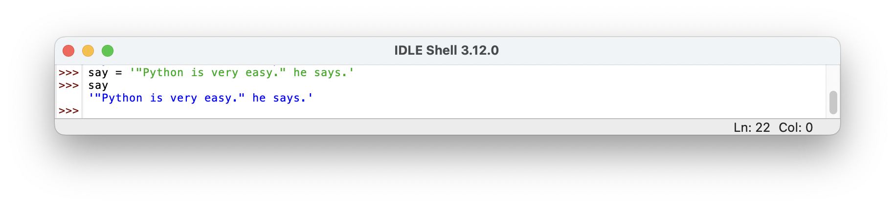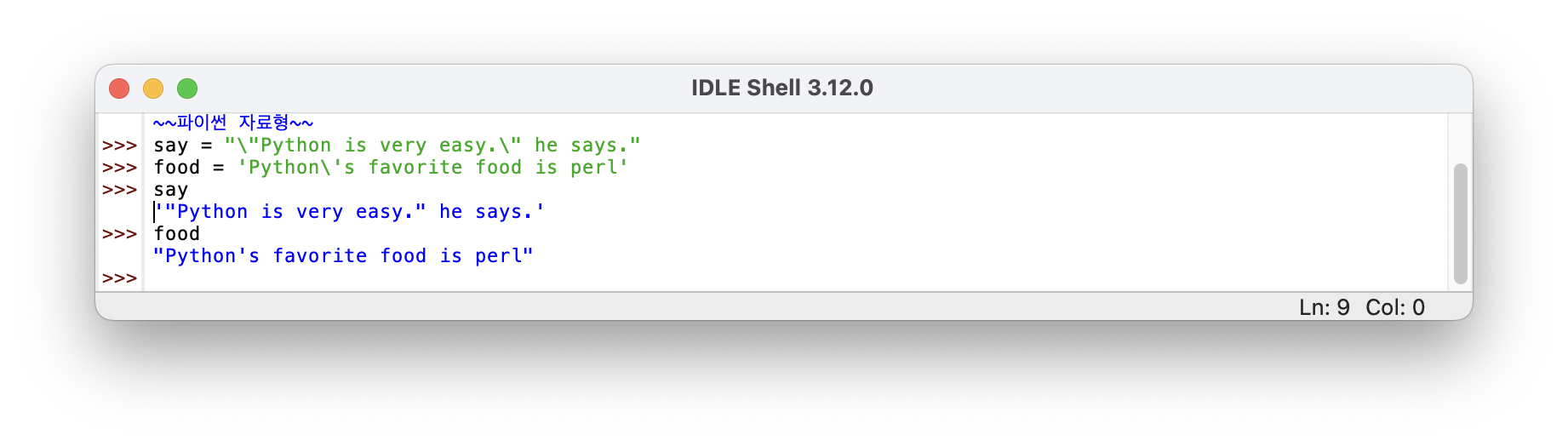 작은따옴표와 큰따옴표 둘 다 문자열에 포함시키려면 역슬래시('\') 이용