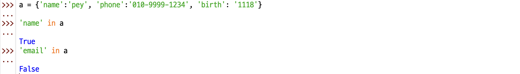 6) 해당 key가 딕셔너리 안에 있는지 조사하기 in