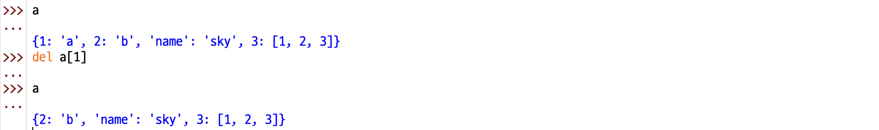 - 딕셔너리는 리스트나 튜플처럼 순차적으로 요소값을 구하지 않고 key를 통해 value를 얻음