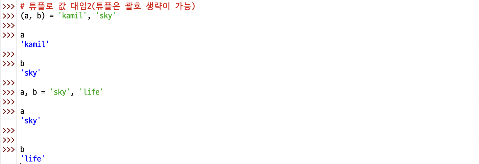 3) 여러 개의 변수에 같은 값 대입