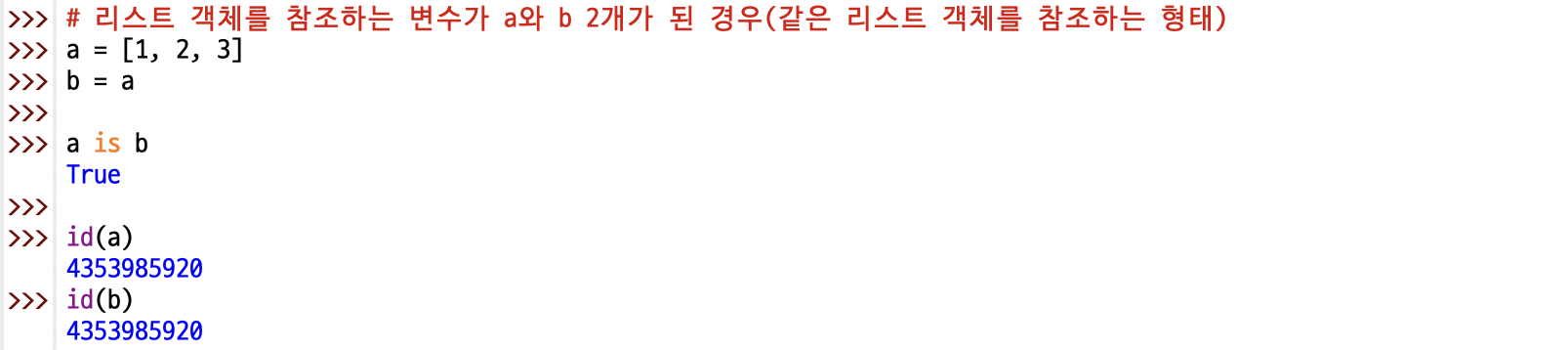 a 변수가 가리키는 메모리의 주소는 파이썬 내장 함수인 id()를 사용하여 아래와 같이 확인할 수 있음