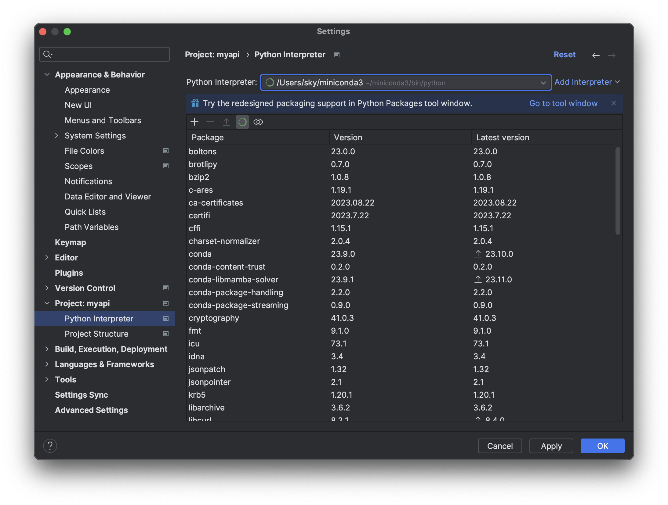 python packages에 필요한 패키지를 검색하여 설치할 수 있음