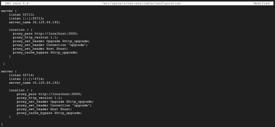 GNU nano 4.8 /etc/nginx/sites-available/configuration Modified
