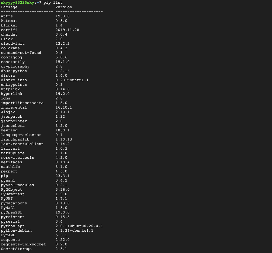 설치되어 있는 python 패키지 확인