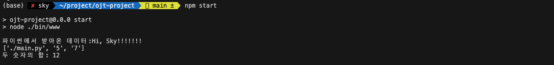 Node.js 에서 제공해주는 child process를 이용해서 파이썬 파일을 실행