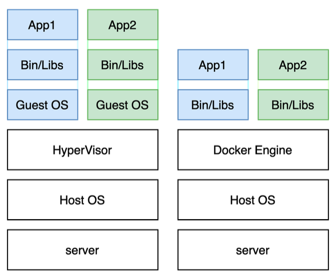 - 도커는 리눅스의 자체 기능인 chroot, namespace, cgroup 기술을 사용해서 프로세스 단위의 격리 환경을 만들기 때문에 성능 손실이 거의 없음