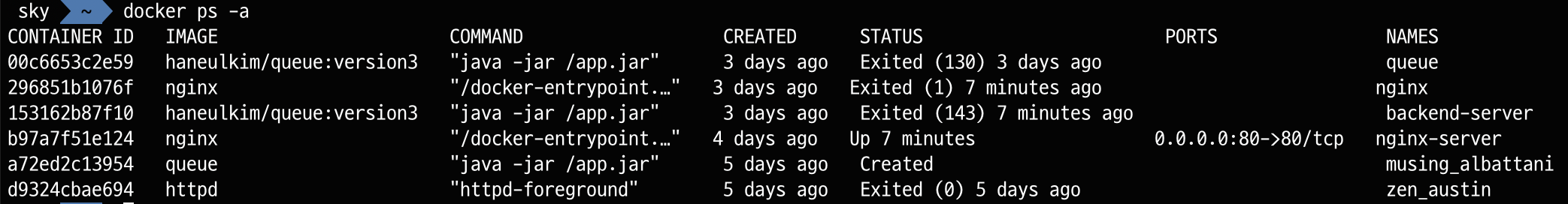 docker ps -a
