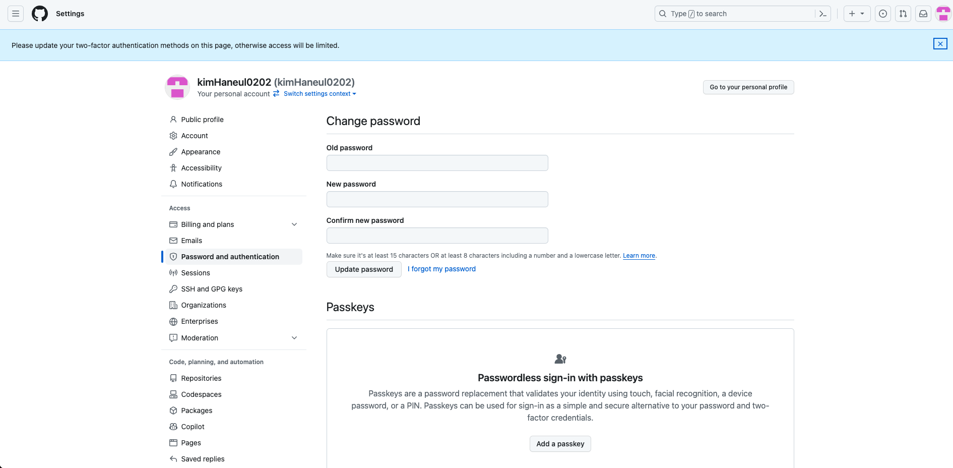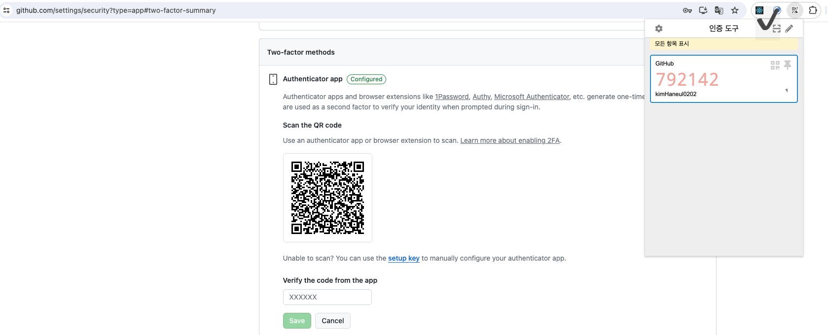 GitHub Mobile 인증이 안되서 Authenticator app으로 인증 시도