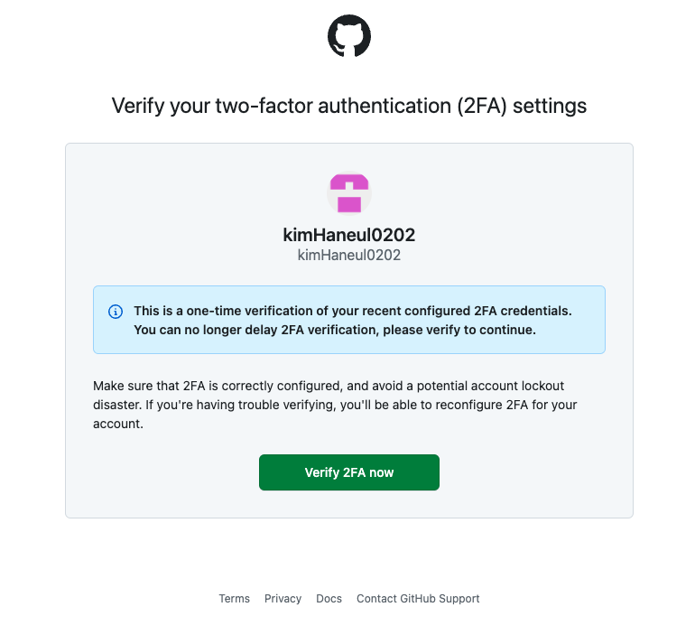인증코드 넣으라는데 깃허브 앱에 들어가도 인증코드를 확인할 수 없고