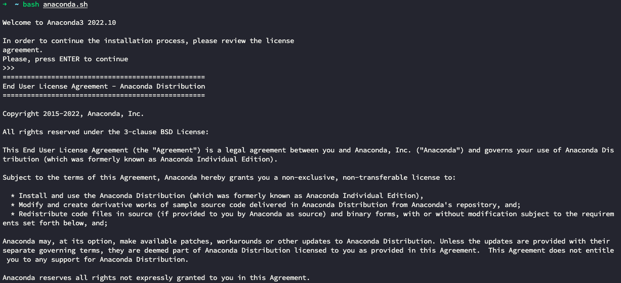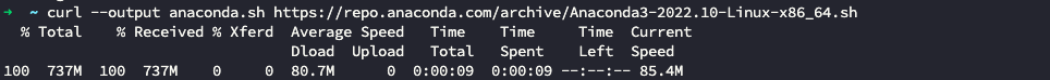 curl --output anaconda.sh https://repo.anaconda.com/archive/Anaconda3-2022.10-Linux-x86_64.sh