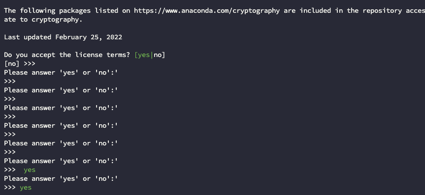 쭉 엔터 치면서 글 내리다가 yes 입력