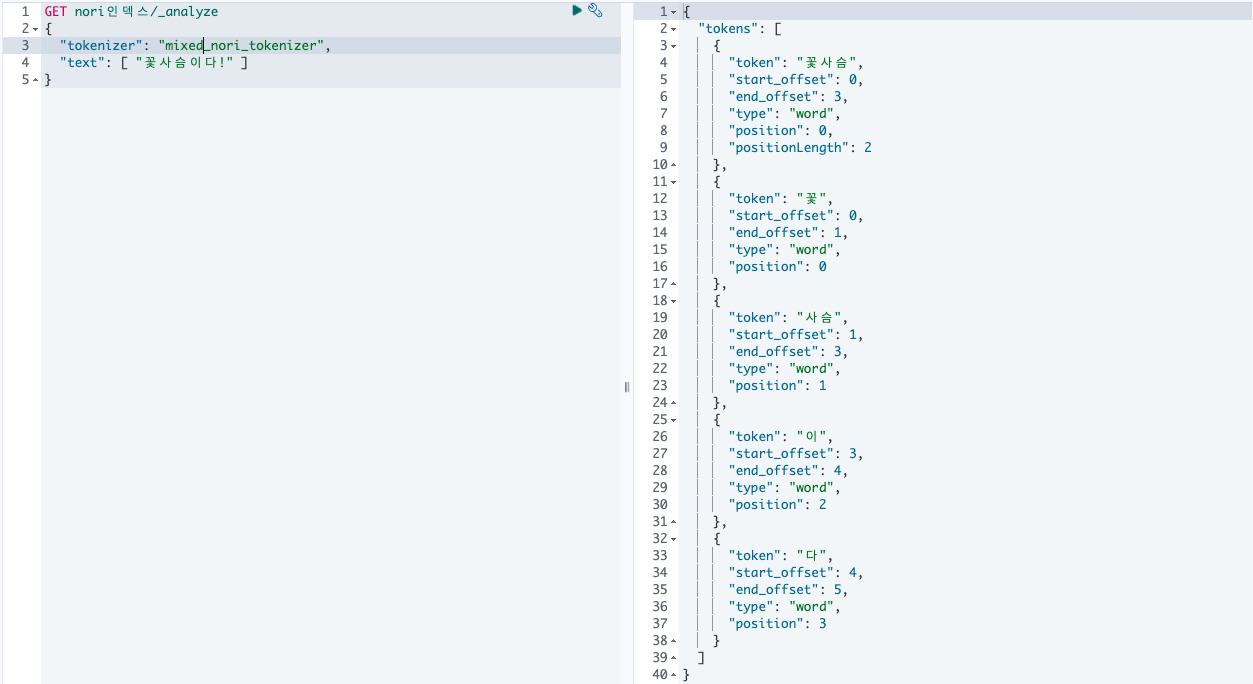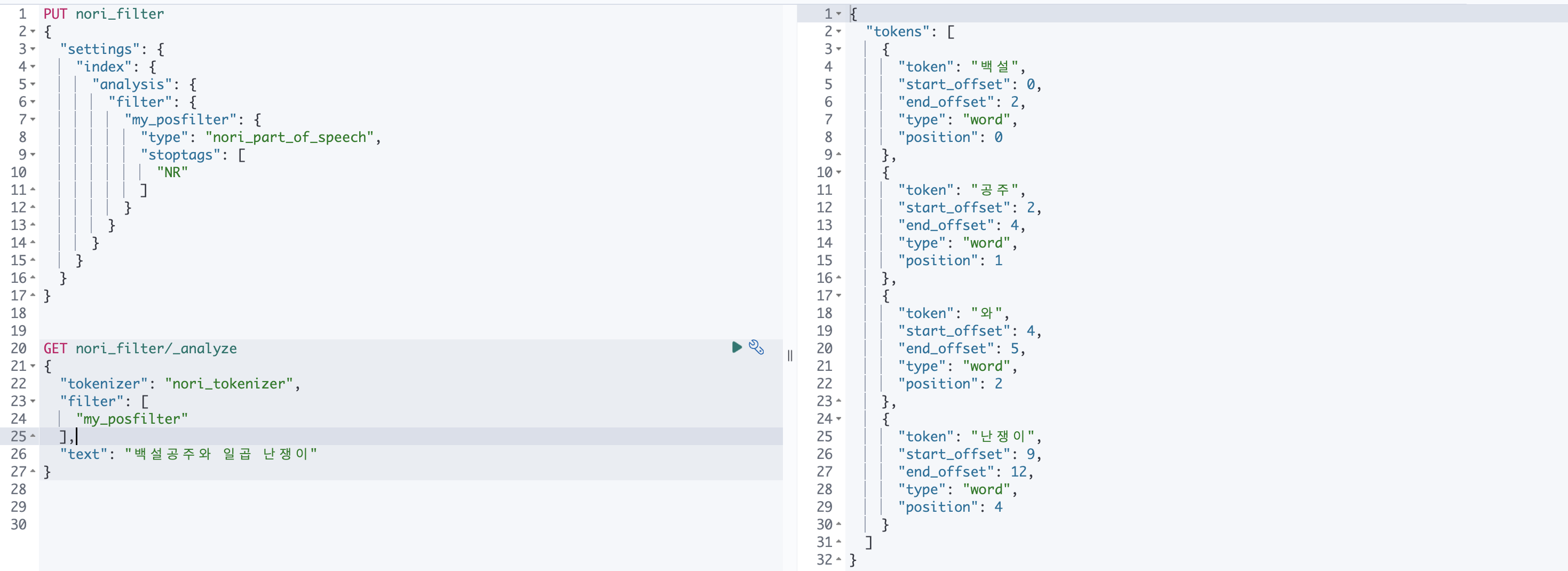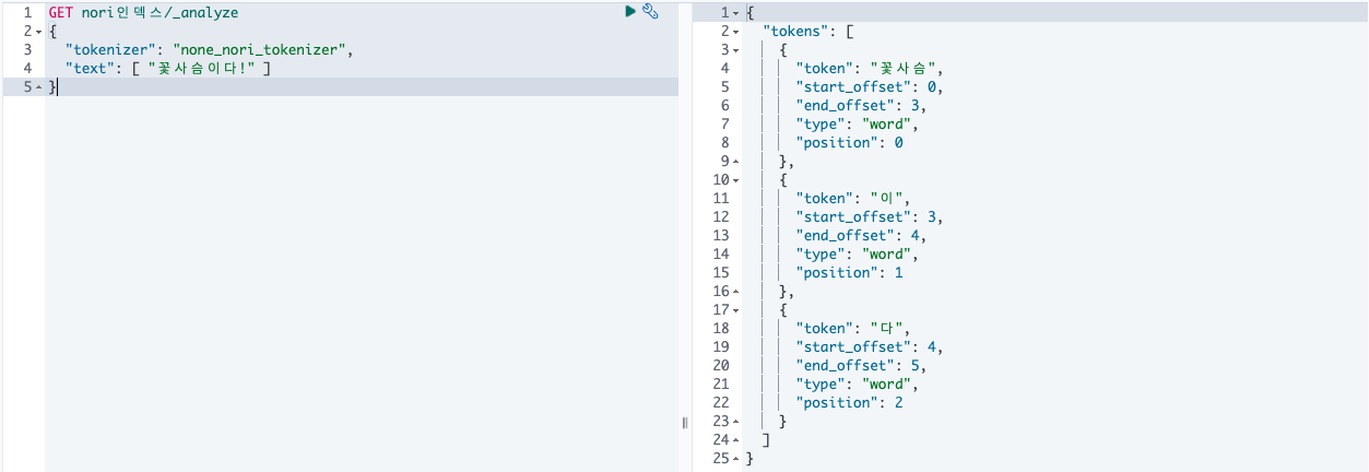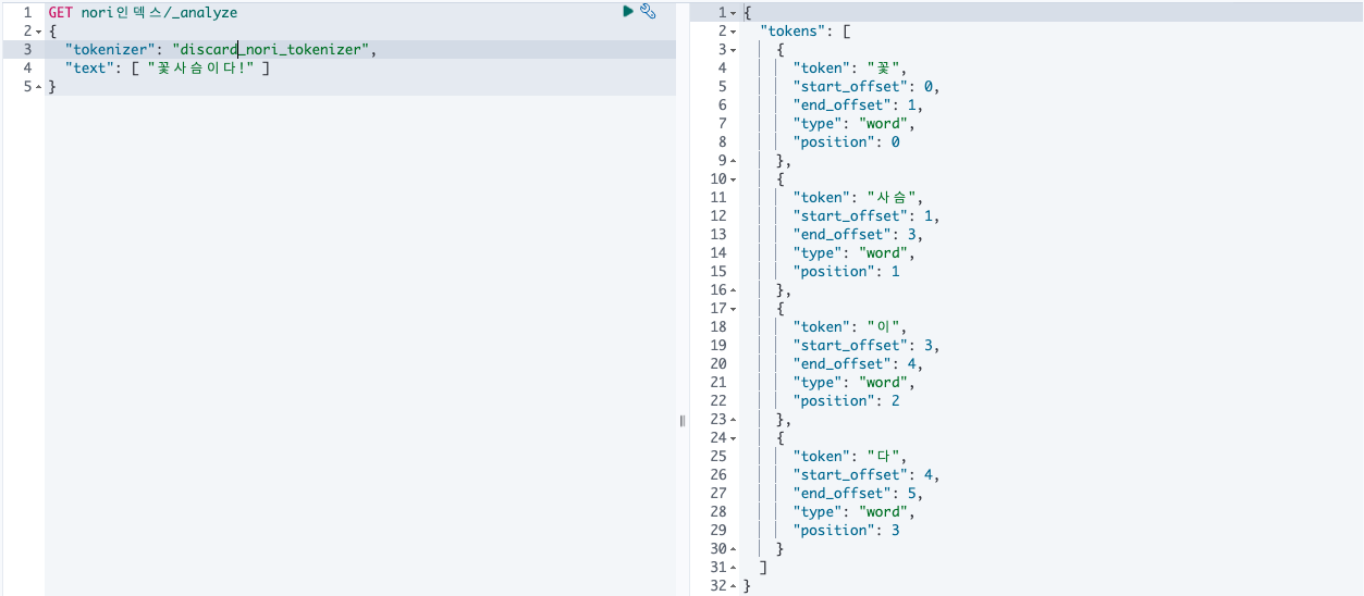 nori_tokenizer의 Discard_Puntation이 false로 설정되어 있어야 함