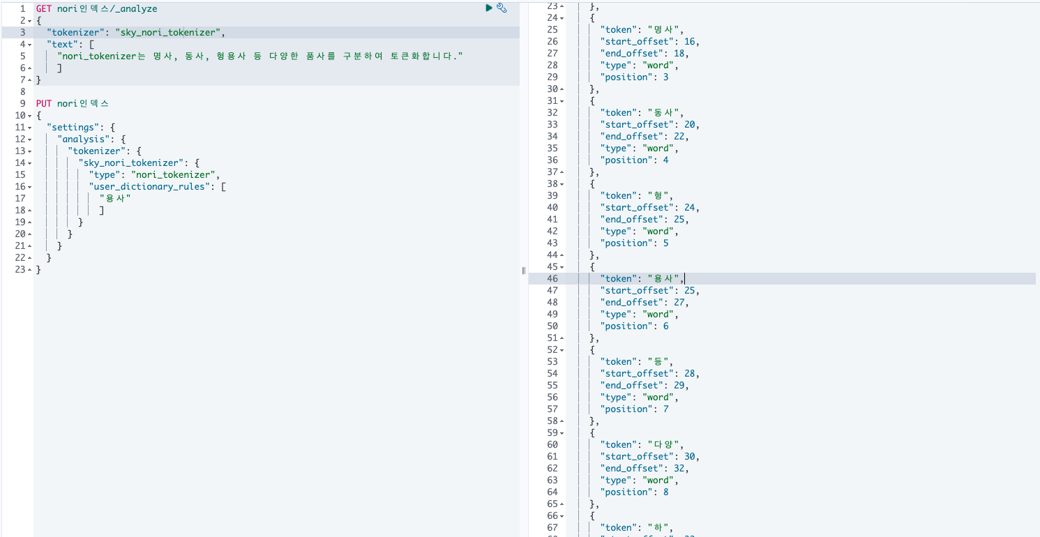 사용자 사전이 변경됐다면 인덱스를 _close/_open 해서 반영 시켜야함