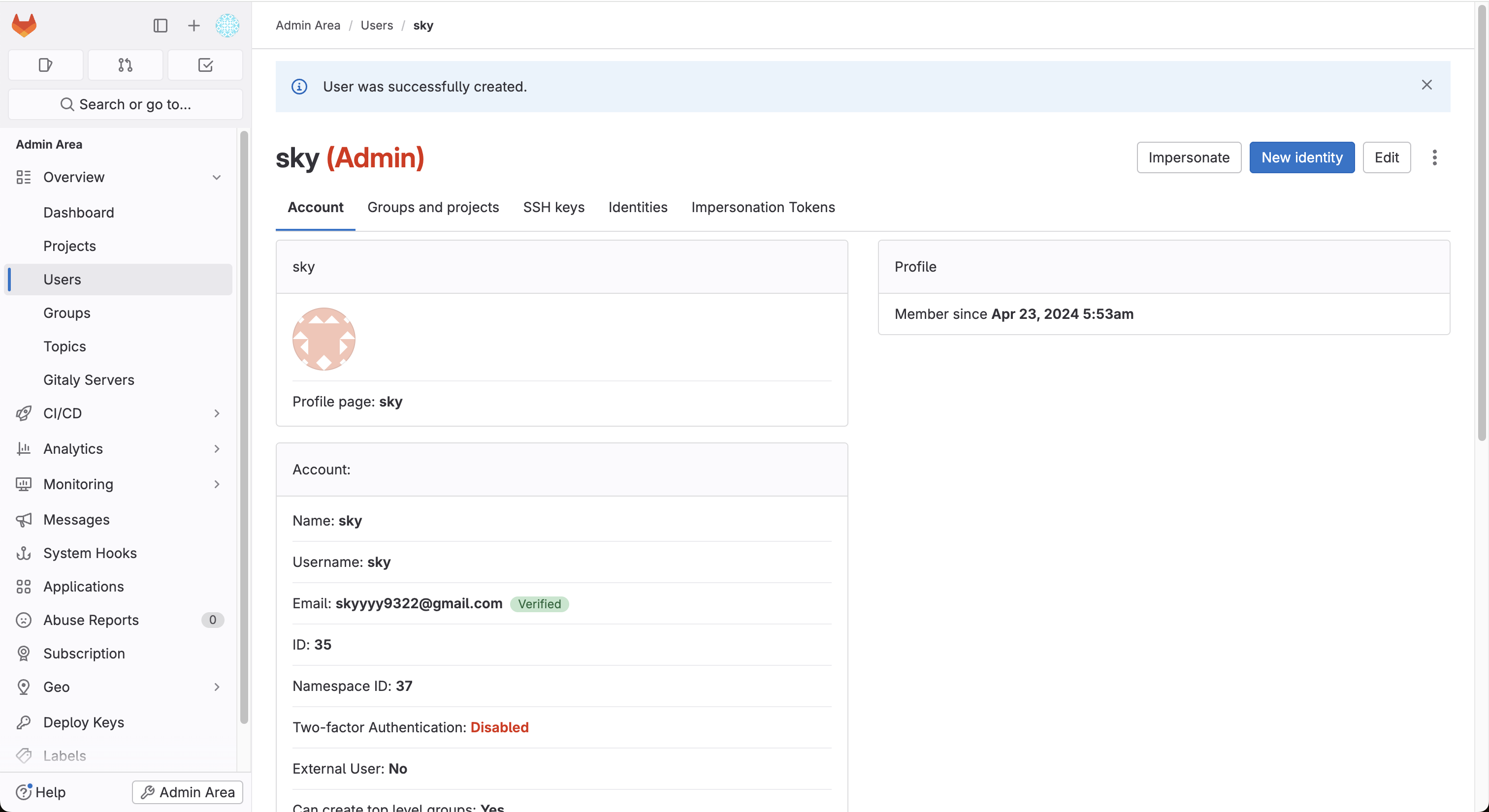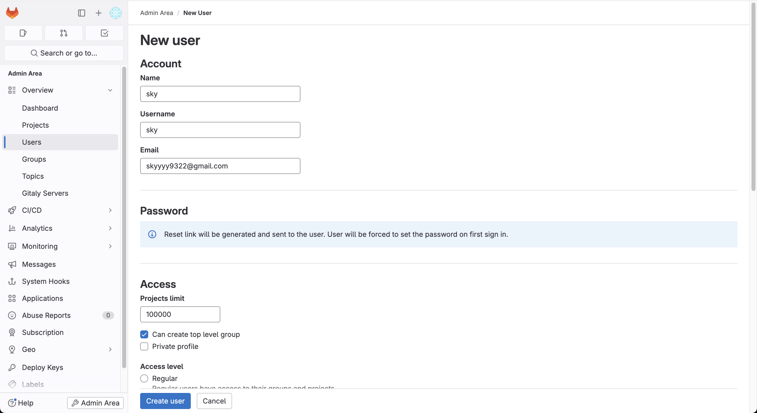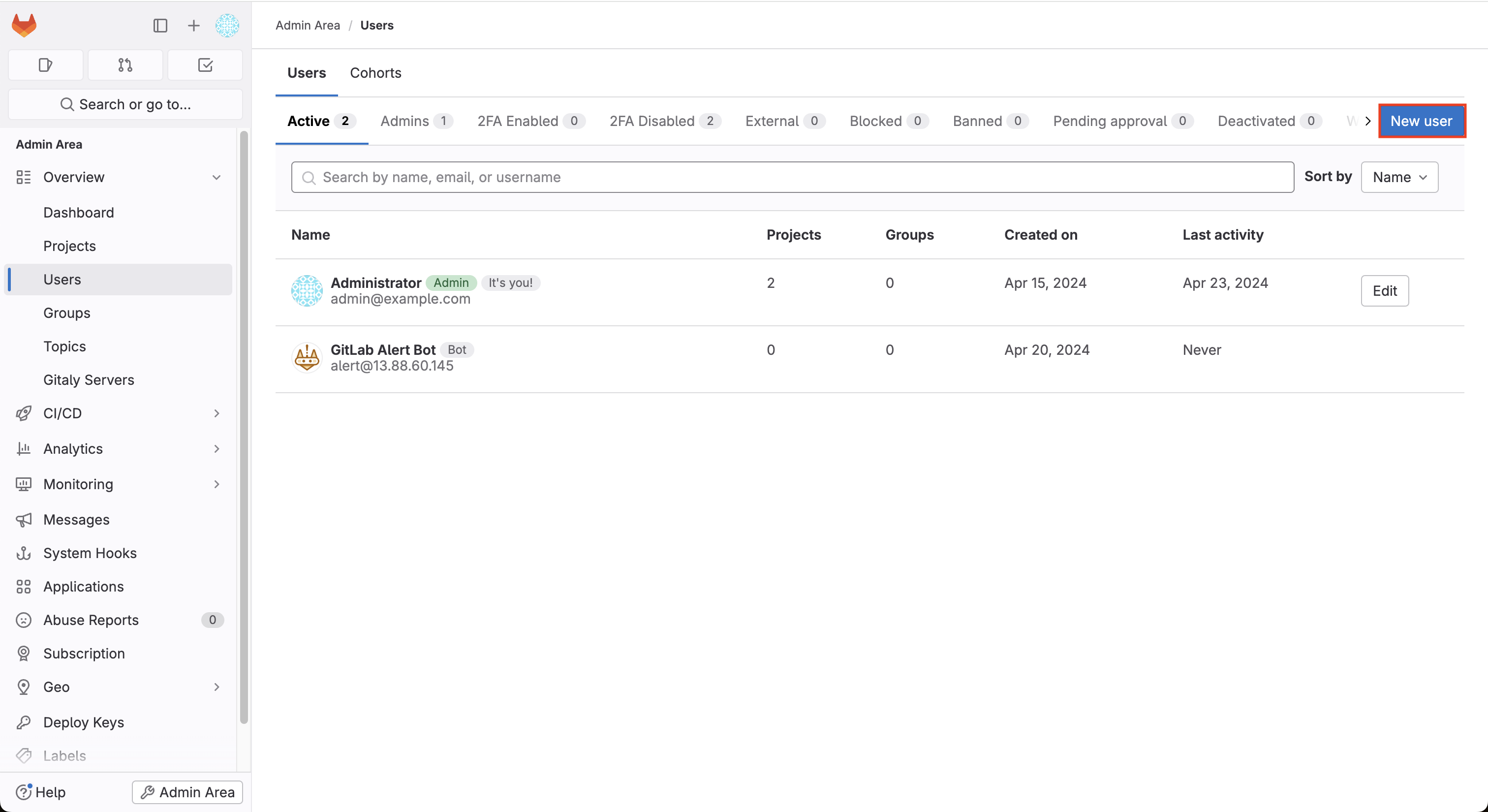 Overview - Users - New User 버튼 클릭