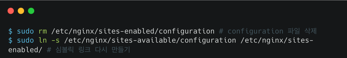 nginx 설정 파일 configuration을 활성화 하기 위한 심볼릭 링크 생성