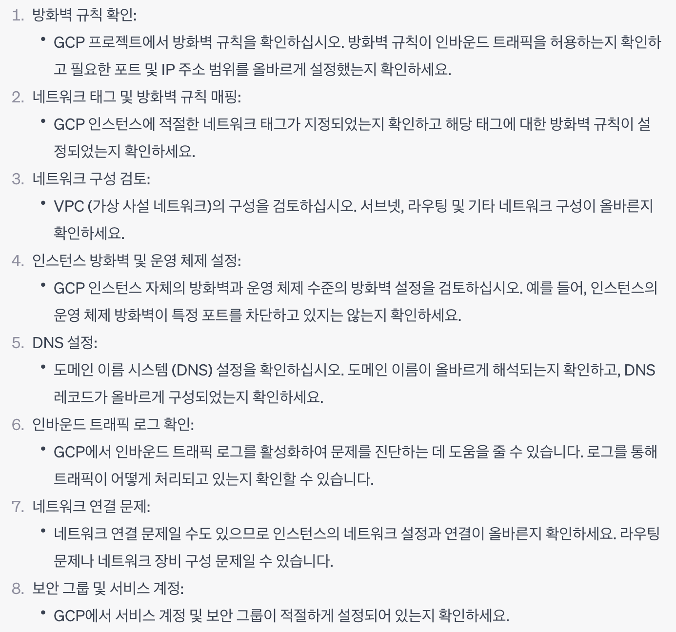 구글 클라우드 플랫폼 외부 IP가 접속 안됨