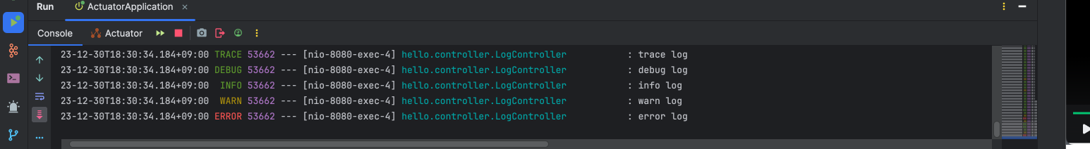 TRACE 레벨 로그까지 찍히는 것을 확인할 수 있음
